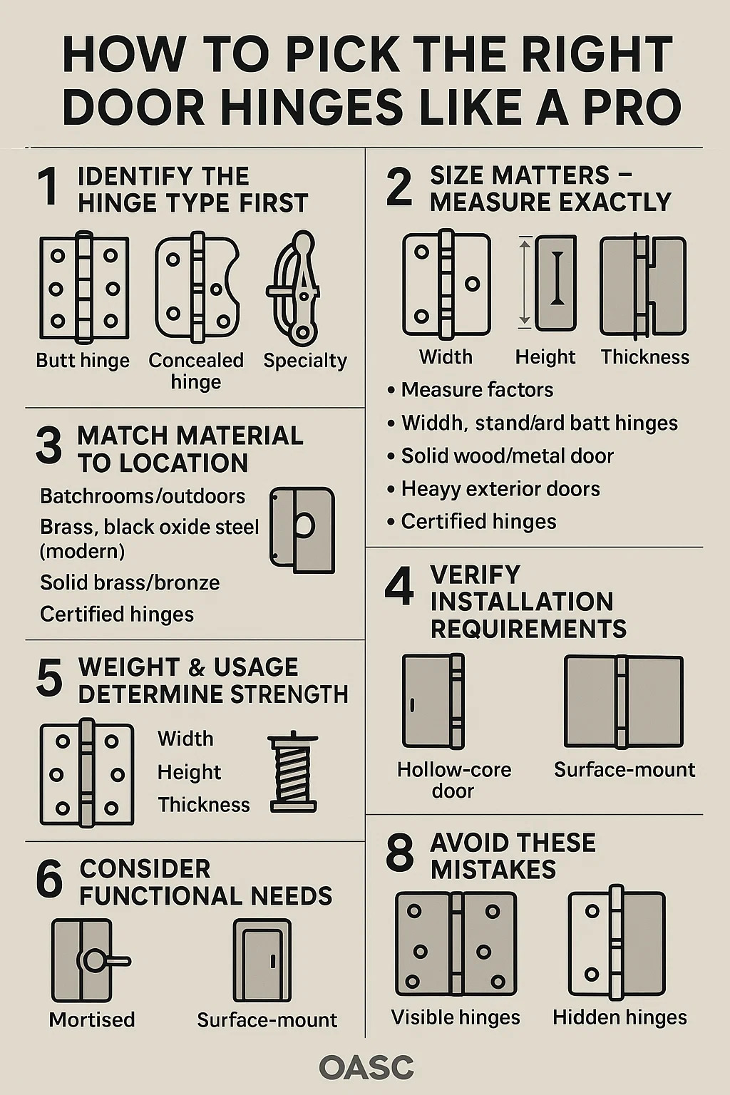 Thickness: Critical for recessed hinges – measure door edge cavity depth.