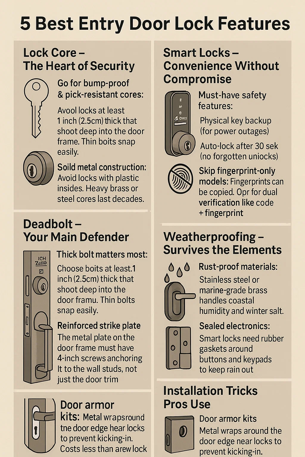 Here's a practical breakdown of the best entry door lock features, based on what locksmiths and experienced homeowners actually recommend: